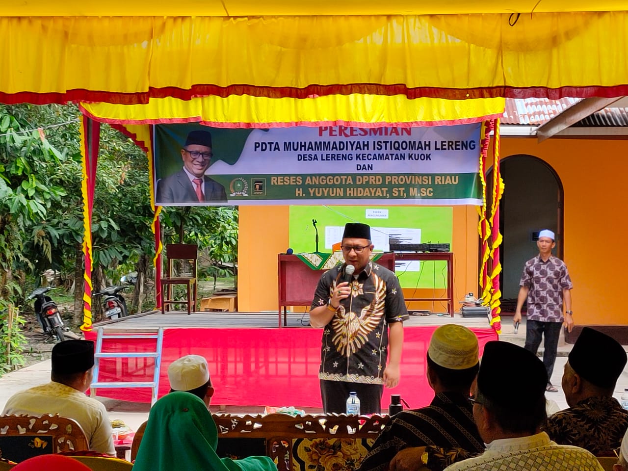 Bekawan.com – Bersamaan dengan agenda reses masa sidang II tahun 2020, Anggota Dewan Perwakilan Rakyat Daerah (DPRD) Provinsi Riau, H Yuyun Hidayat ST MSc meresmikan pemakaian gedung baru Madrasah Pendidikan Diniyah Takmiliyah Awaliyah (PDTA) Istiqomah, Desa Lereng, Kecamatan Kuok, Rabu (26/2/2020).