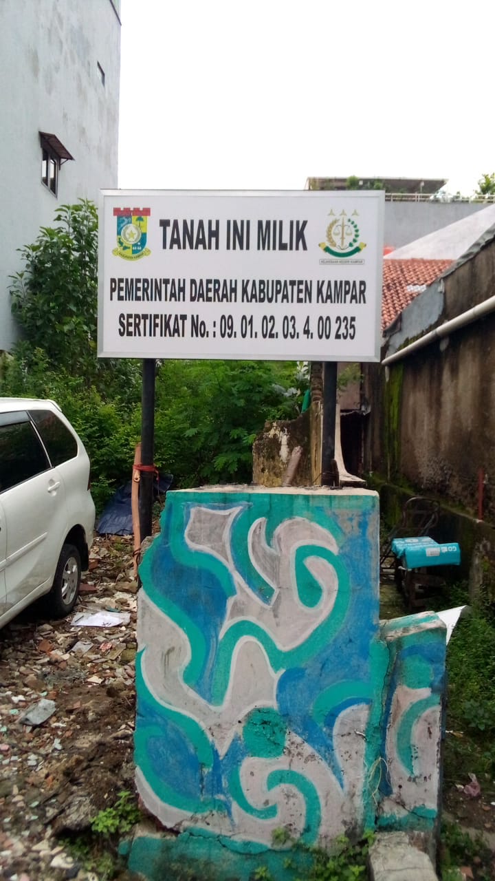 “Untuk mengamankan  sebudang tanah milik Pemkab Kampar ini, kita melakukan pemasangan Plang yang bertuliskan Milik Pemkab Kampar, Sertifikat dengan No : 09.01.02.03.4.00 235, Ttnah ini diperkirakan dengan harga sekitar Rp 3,8 M,” terang Kasi Intel, Senin (22/2/2021).