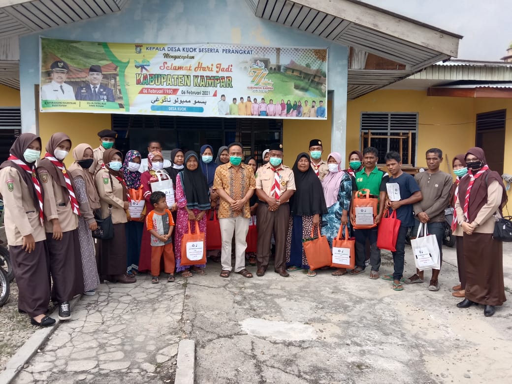 “Anggota Pramuka Kwarran Kuok sudah mengambil andil saat musibah terjadi, meminta bantuan, menyerahkan pakaian layak pakai, menyumbangkan tenaga serta bantuan lainnya, dan sekarang hadir kembali bersama kita untuk memberikan paket ibadah,” ujar Pak Andis Sapaan akrabnya. (Rilis/Sutri)