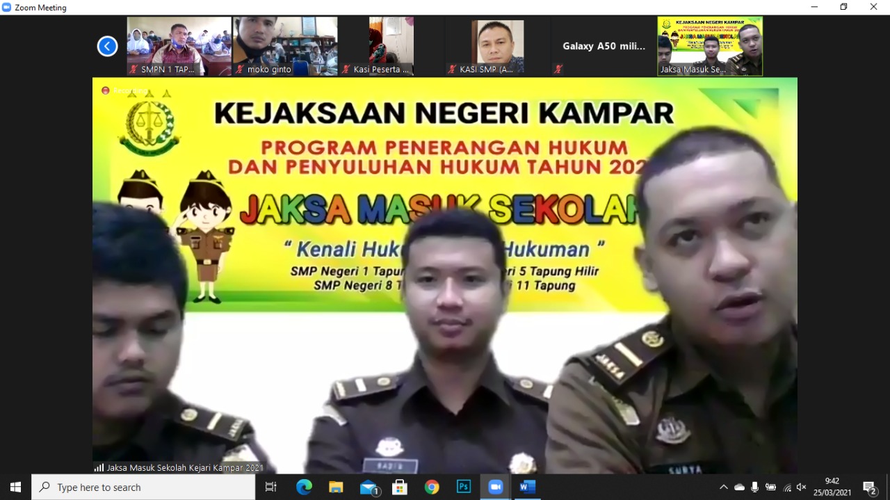 Narasumber memberikan materi secara virtual dari Kantor Kejari Kampar.