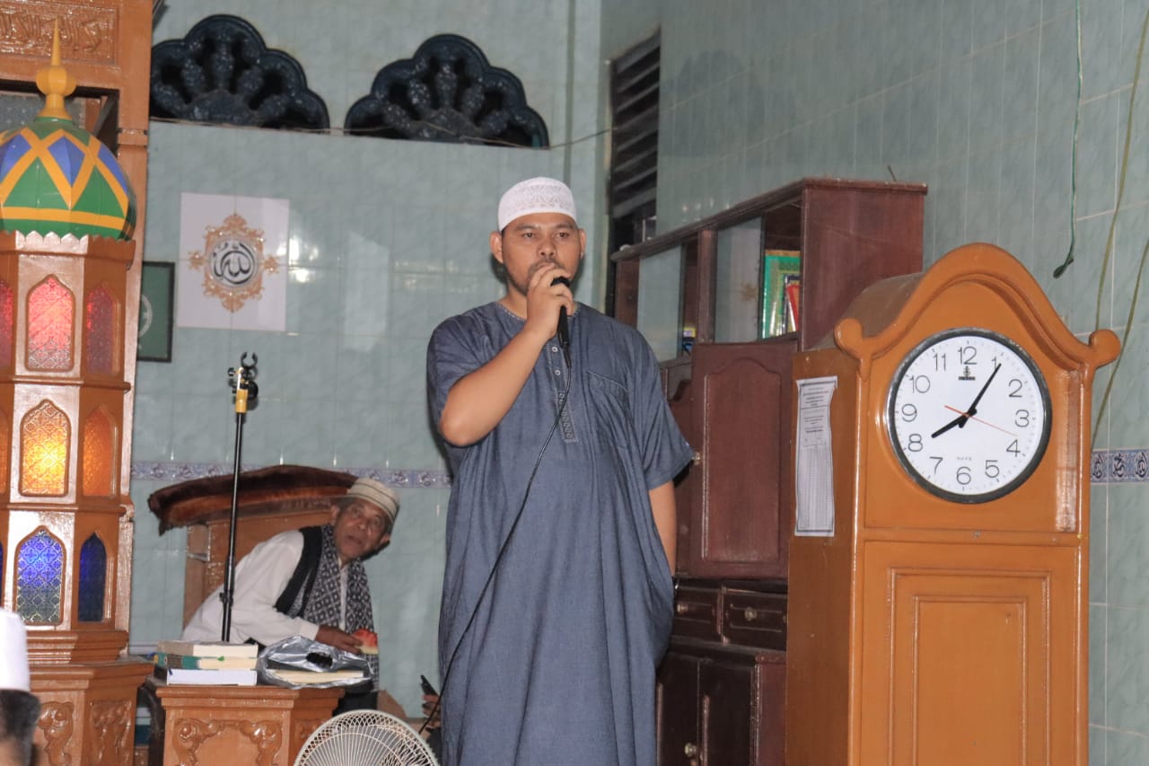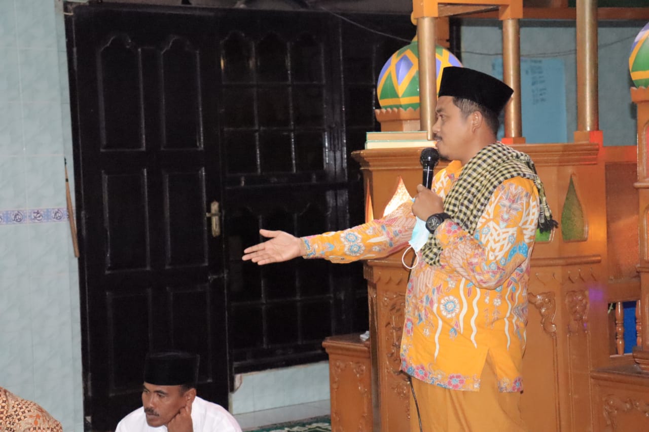 Ketua DPD II Golkar Kampar Repol, S.Ag saat menyapa jemaah Masjid Al Mujahidin Gunung Bungsu.