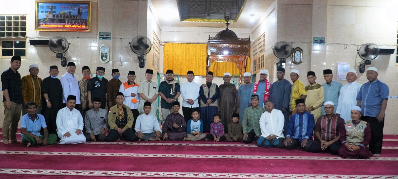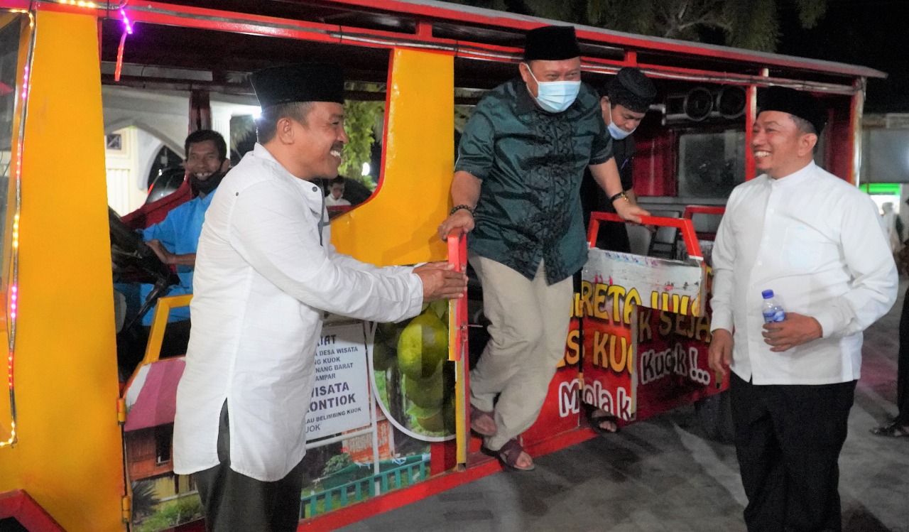 Usai buka bersama bupati dan rombongan melakukan sholat Isya dan Tarawih bersama masyarakat di Masjid Raya Al Ittihad pasar Kuok dengan menaiki odong-odong milik masyarakat Kuok.