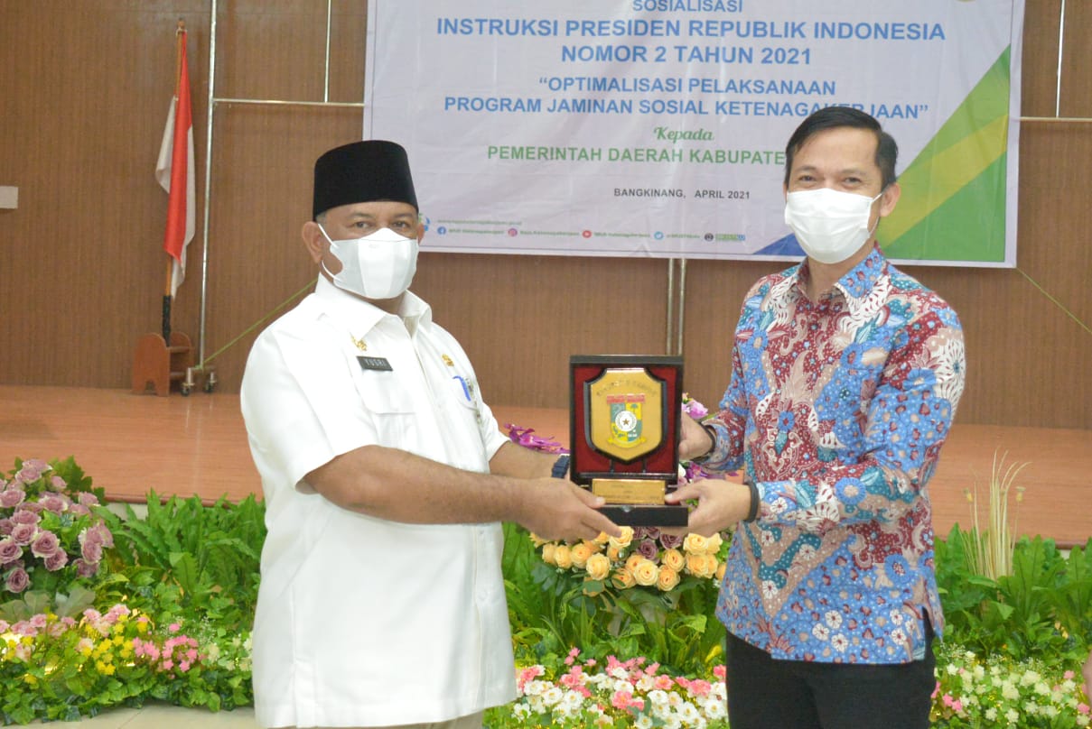 Kegiatan yang ditaja oleh Badan Penyelenggara Jaminan Sosial (BPJS) Ketenagakerjaan Cabang Kabupaten Kampar ini diikuti seluruh Kepala Organisasi Perangkat Daerah dilingkungan Pemerintah Kabupaten Kampar serta undangan lainnya, Rabu (21/4/2021).