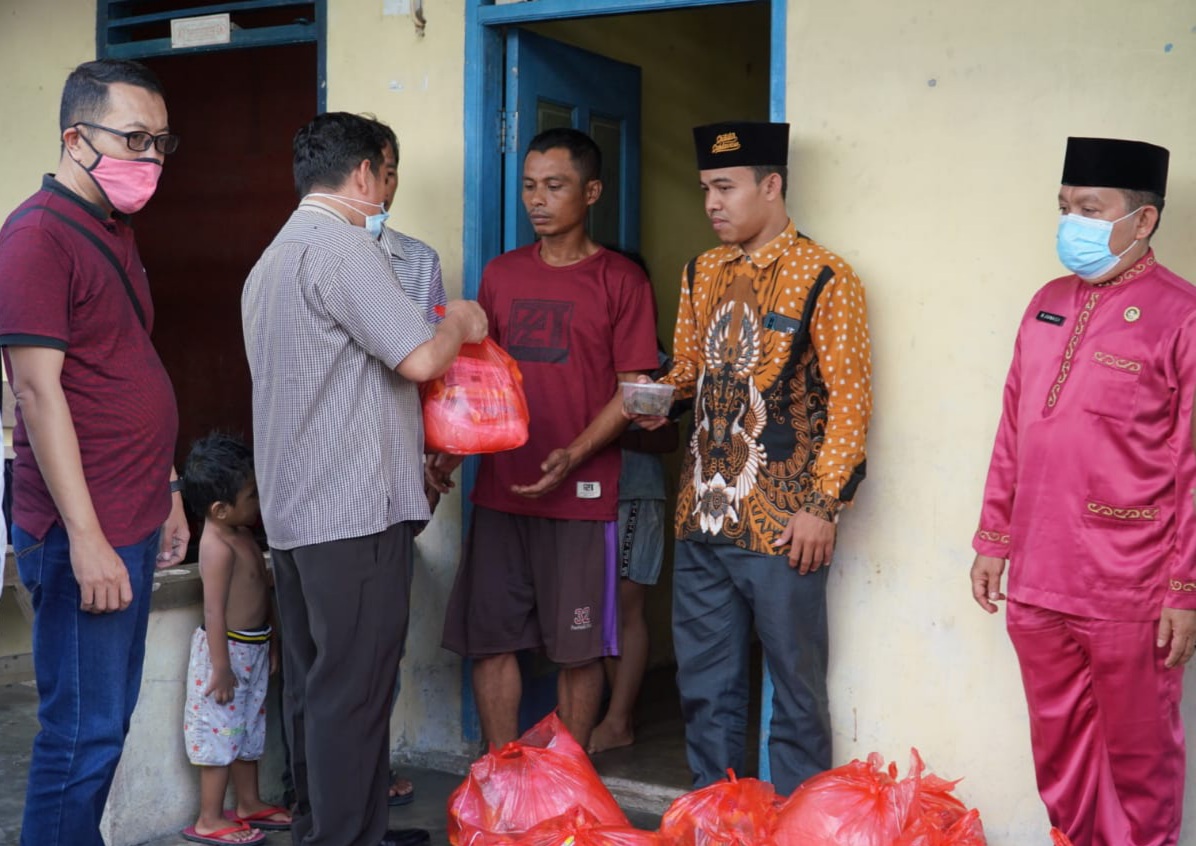 Diskominfo dan Insan Pers Kampar Bagikan Bubur Asyuro dan Sembako kepada Warga Isoman