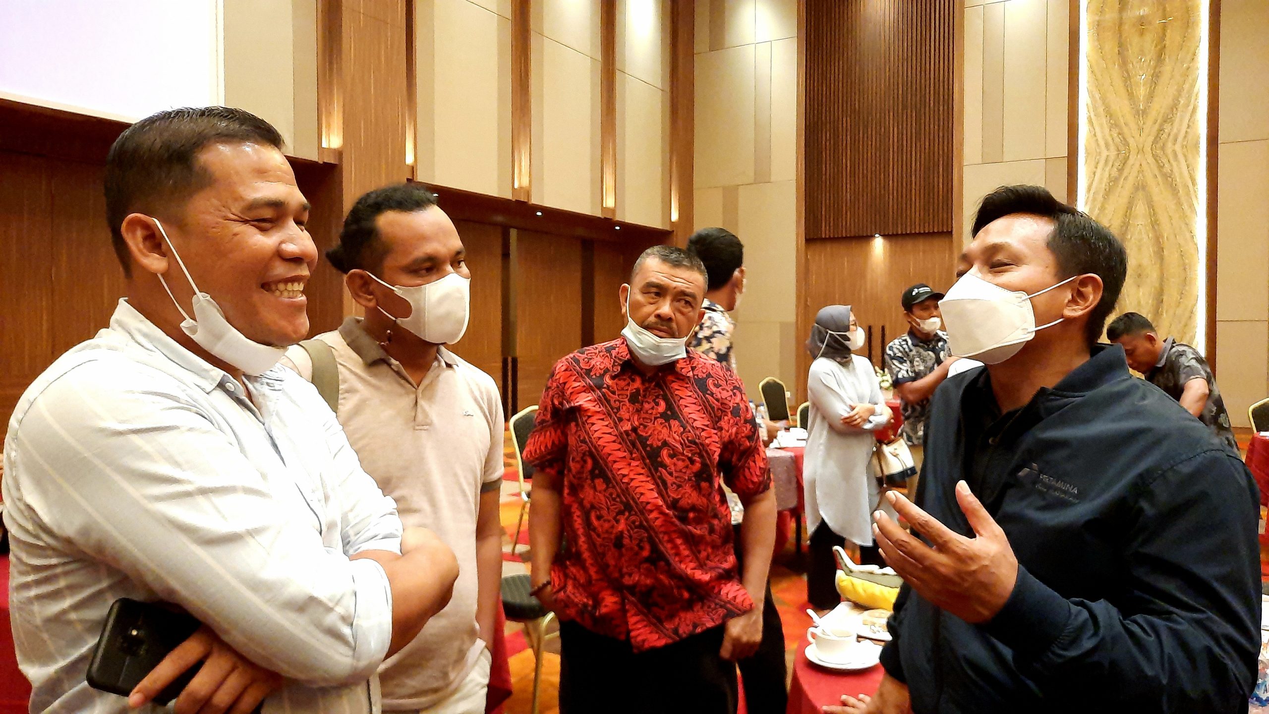 Manager Commrel & CID Regional Sumatera Handri Ramdhani saat berbincang dengan Ketua PWI Kampar dan insan pers lainnya.