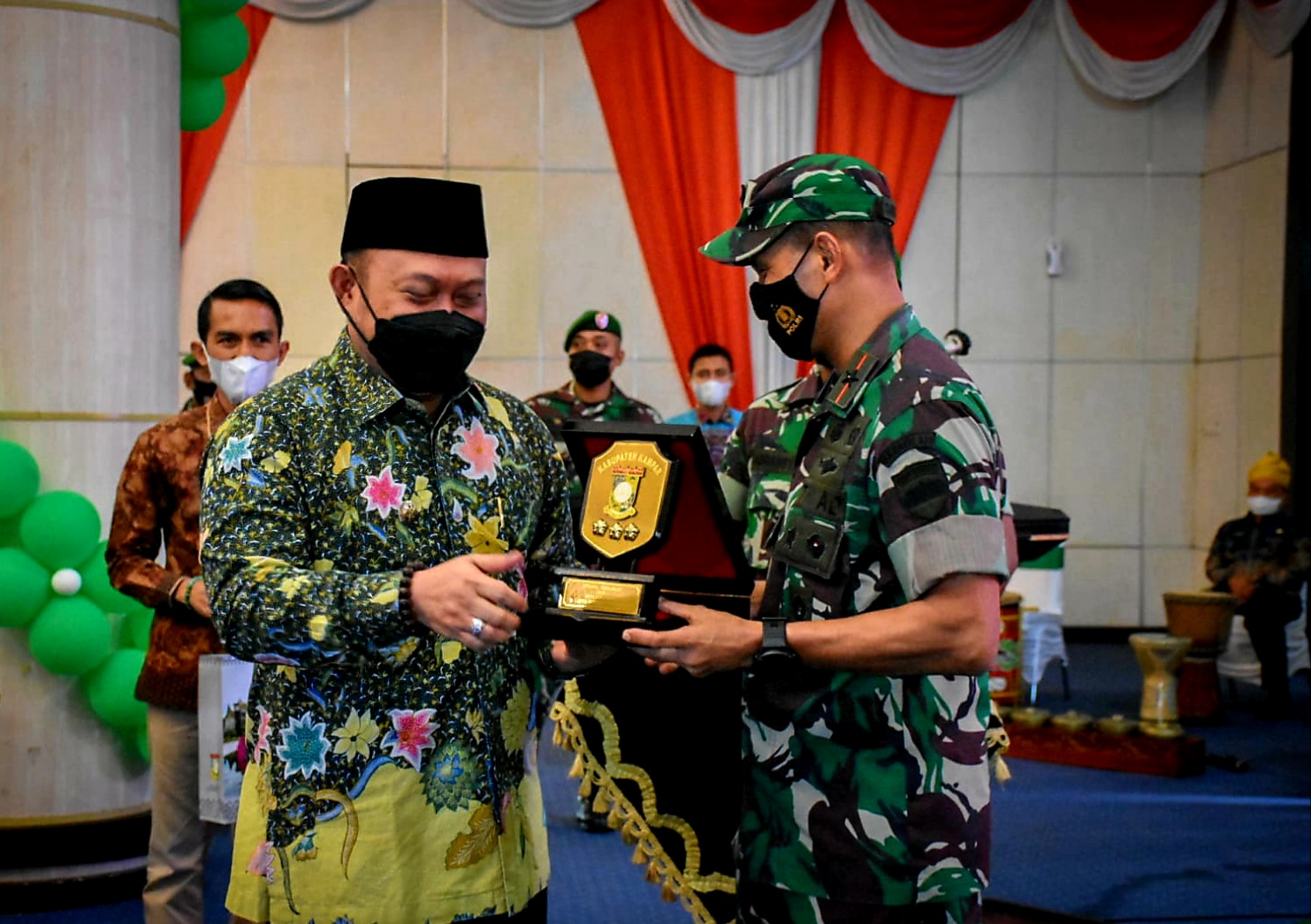 Danrem 031/WbB Brigjen TNI M. Syech Ismed bertukar cendera mata dengan Bupati Catur. Foto: DiskominfoKampar