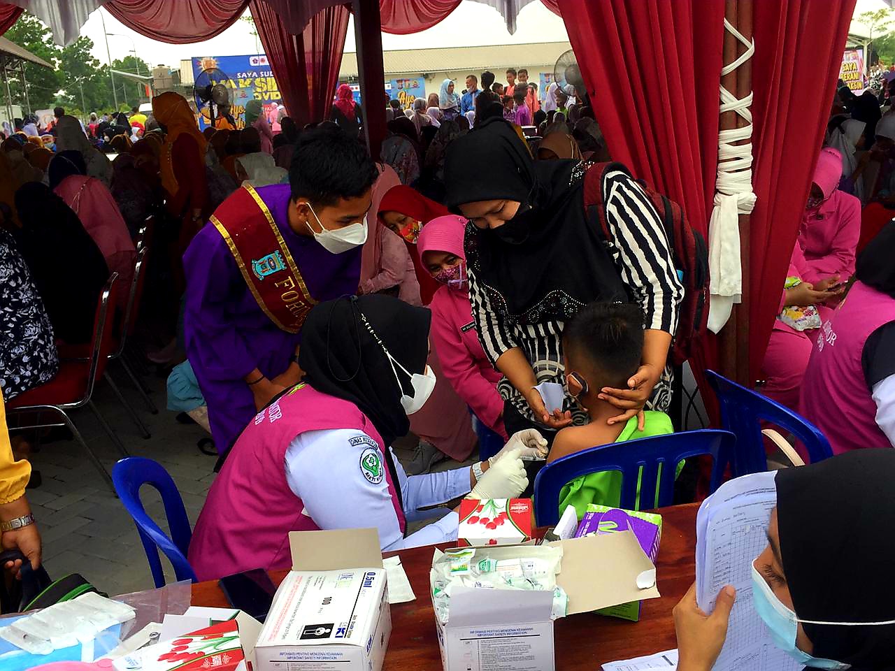 Kegiatan ini merupakan bagian dari vaksinasi massal serentak se-Indonesia yang di pimpin langsung oleh bapak presiden Jokowi dari Istana Bogor secara virtual melalui zoom meeting cloud.