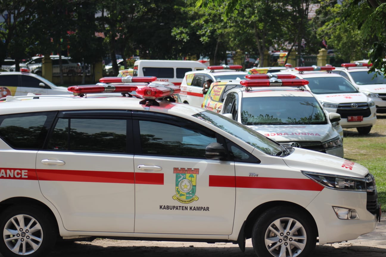 Sejumlah mobil ambulance desa di pamerkan dalam acara penerimaan Piagam Rekor MURI. Foto : Diskominfo Kampar.