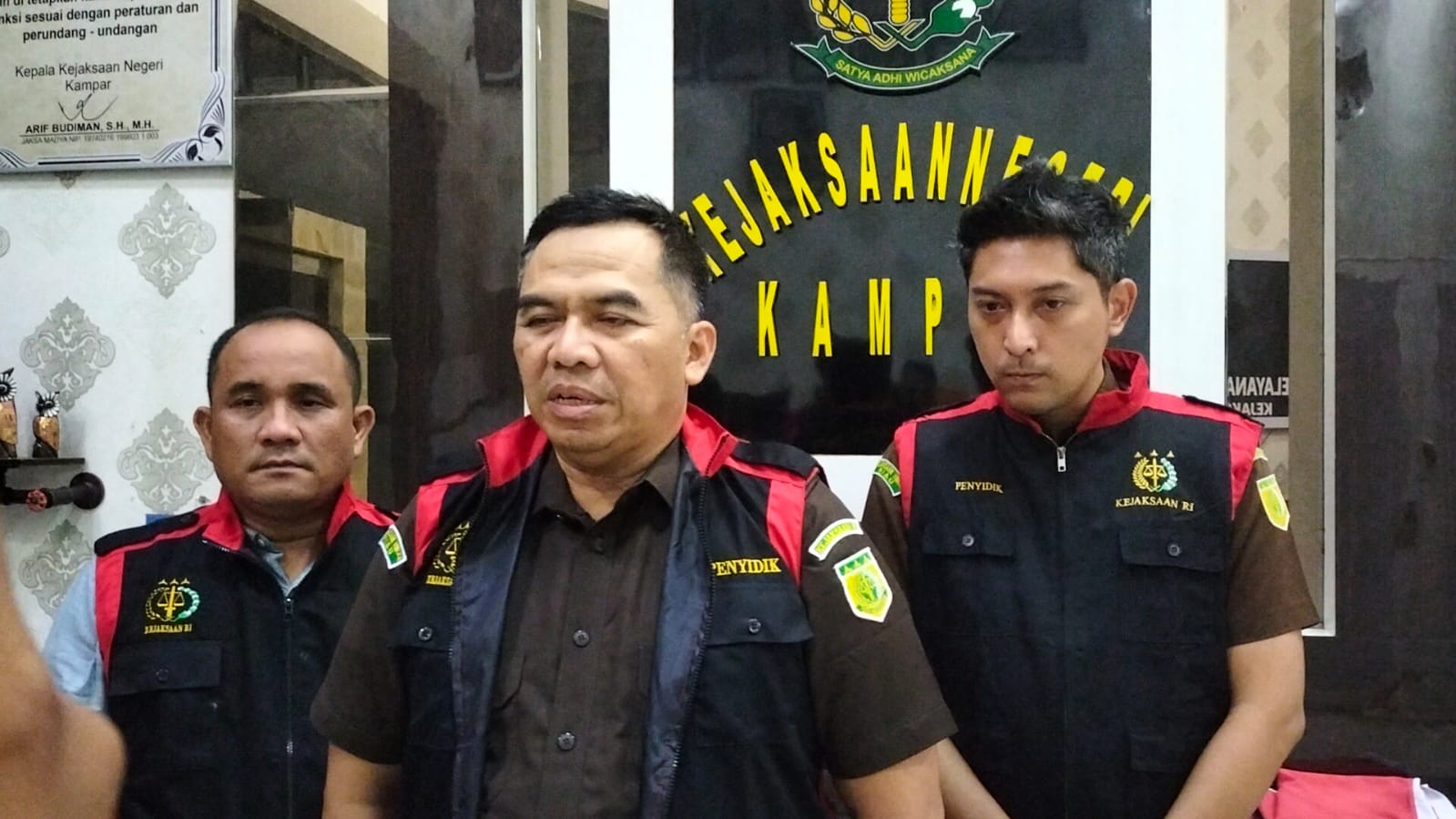 Kejari Kampar didampingi Kasi Pidsus Amri Rahmanto Sayekti dan Kasi Intel Silfanus Rotua Simanullang, Kasubsi Penyidikan Haris Jasmana, Surya Rahmadani, Muhammad Sadiq Anggara.
