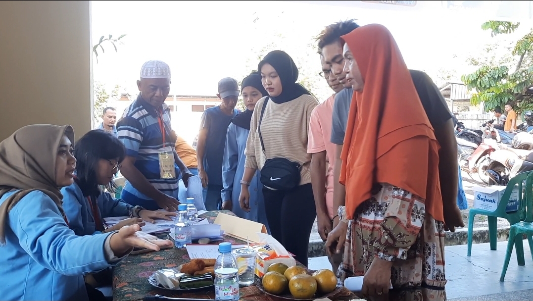 Panitia mengarahkan warga ke bilik suara setelah pengecekan data diri. Foto: Bekawan.com