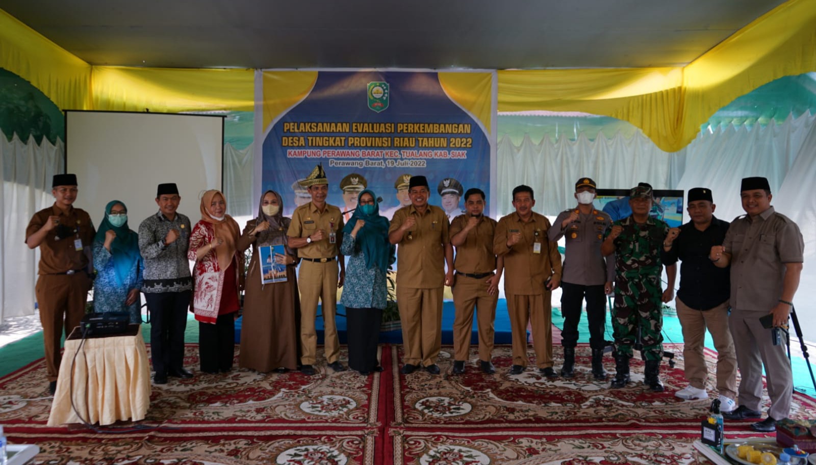Bekawan.com -Bupati Siak Alfedri menyambut kedatangan Tim Penilaian di Kantor Penghulu Perawang Barat Kecamatan Tualang dan Kantor Lurah Minas Jaya, Kecamatan Minas, Selasa (19/7/2022).