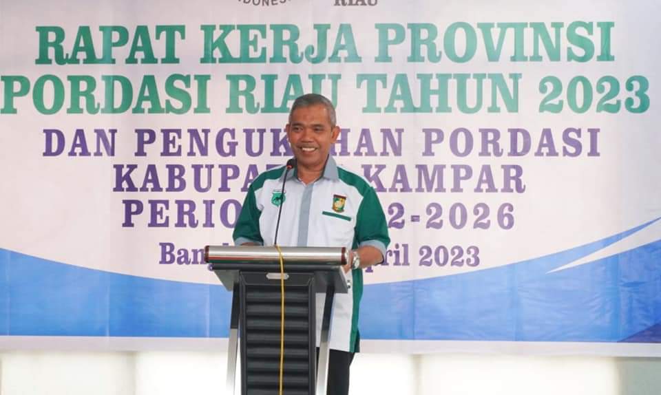 Bekawan.com – Pj Bupati Kampar Dr. H. Kamsol. MM hadiri Pembukaan Rapat Kerja Provinsi Riau sekaligus Pengukuhan dan pelantikan Persatuan Olahraga Berkuda Seluruh Indonesia (Pordasi) Kampar di Aula Stanum Resort Bangkinang, Sabtu (1/4/2023).