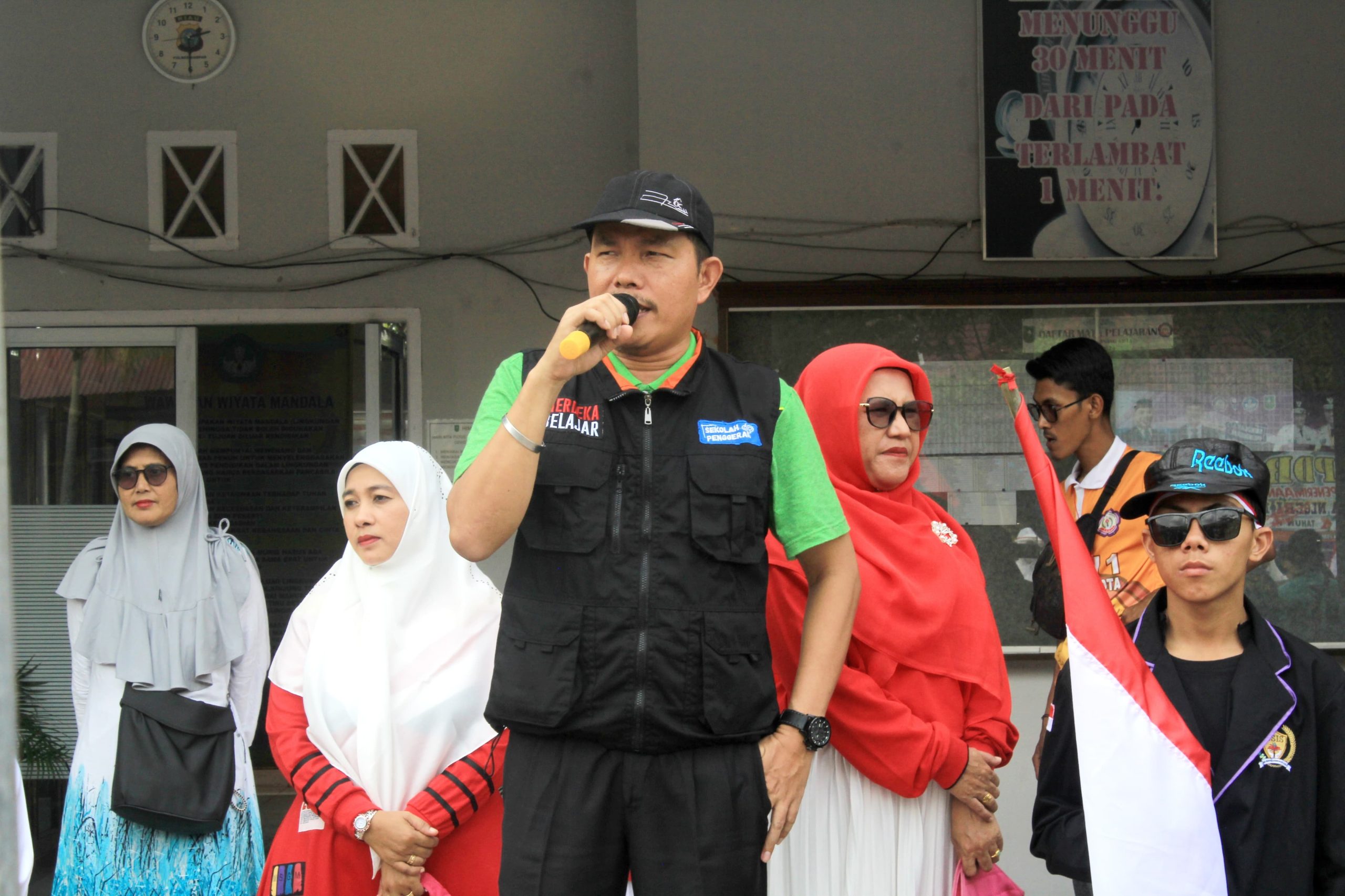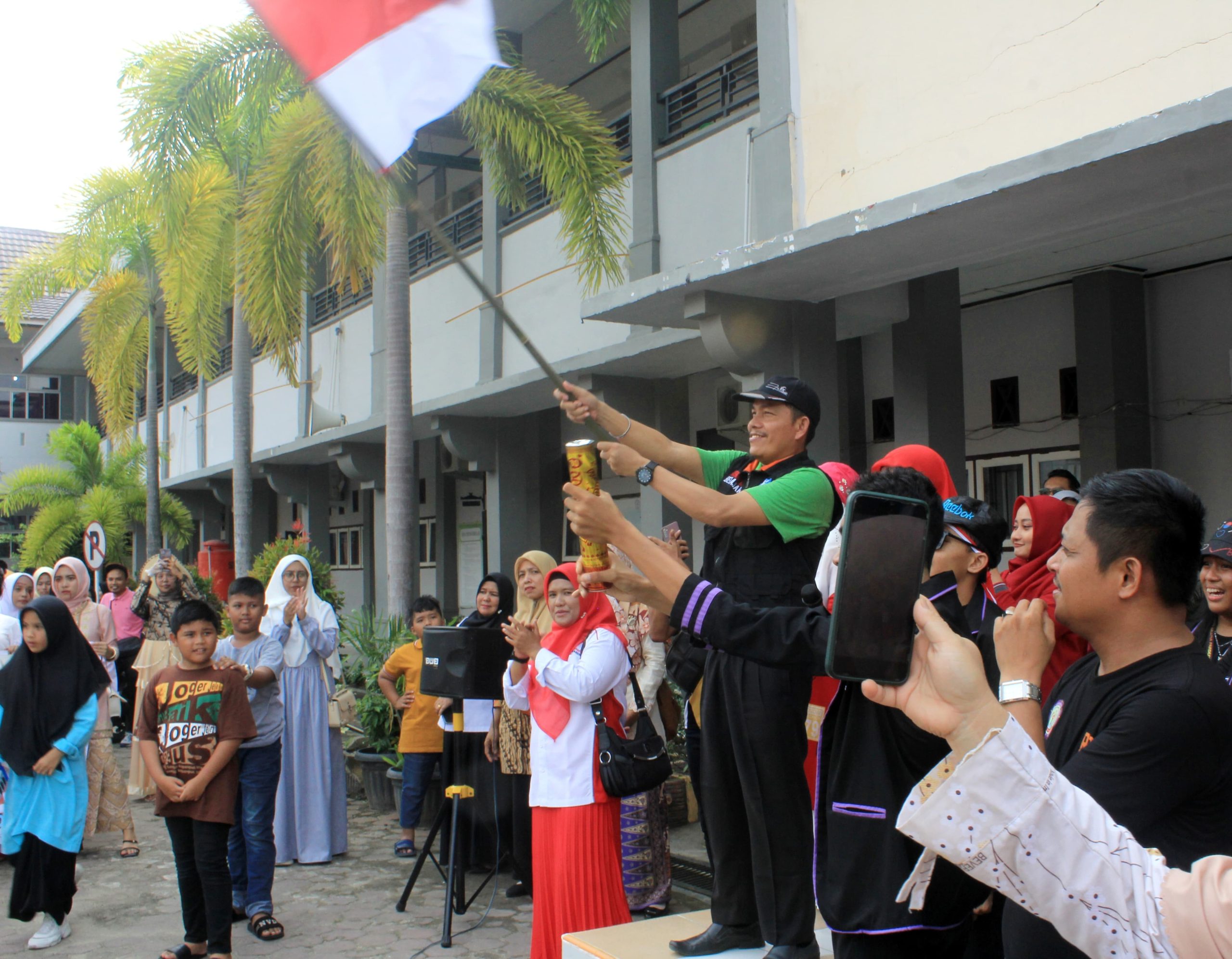 Kepala SMA I Bangkinang Kota, M. Hendra Yunal membuka dan melepas Pawai Akbar SMA I Bangkinang Kota.