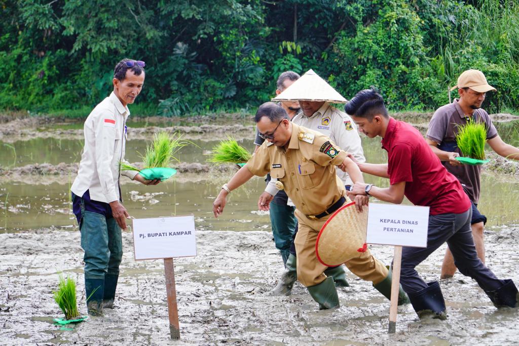 Dalam sambutannya Pj Bupati juga mengucapkan terimakasih dan apresiasi kepada Kelompok Tani Nelayan Andalan (KTNA) Kabupaten Kampar dan seluruh kelompok petani terkhusus kelompok tani Bonca Kosiok Desa Uwai yang hari ini telah melakukan tanam perdana padi sawah IP 200.
