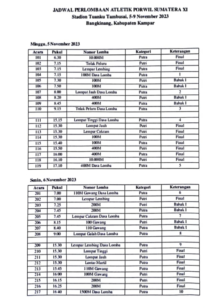 Ini Jadwal Perlombaan Cabor Atletik Porwil XI Sumatera 2023 di Kampar