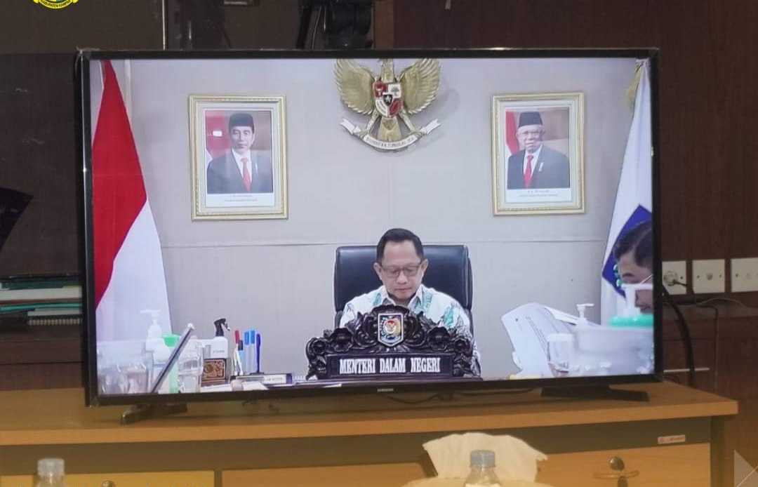 Mendagri Tito saat memimpin rapat via Vidcon terkait NPHD. Foto : Prodokpim