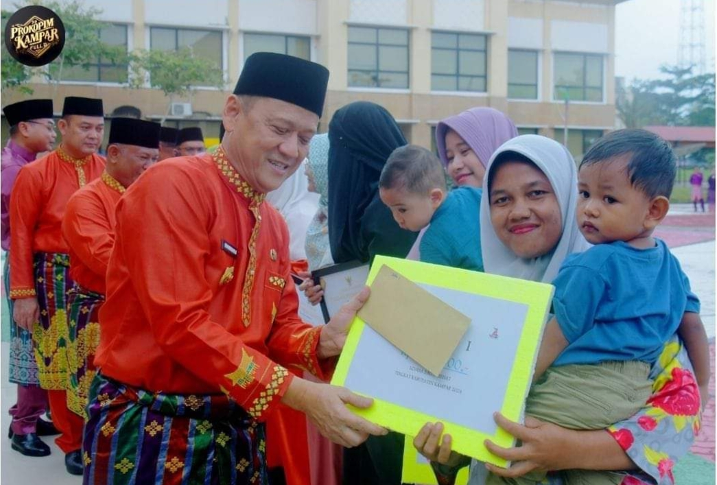 Bekawan – Penjabat Bupati Kampar H. Hambali, SE, MBA, MH menyerahkan hadiah kepada pemenang lomba Balita sehat yang ditaja Dinas Kesehatan, penyerahan hadiah lomba yang digelar Sempena Hari Jadi Kampar ini di lakukan Hambali disela-sela Apel Hari Jadi Kampar, Selasa (6/2/2024).