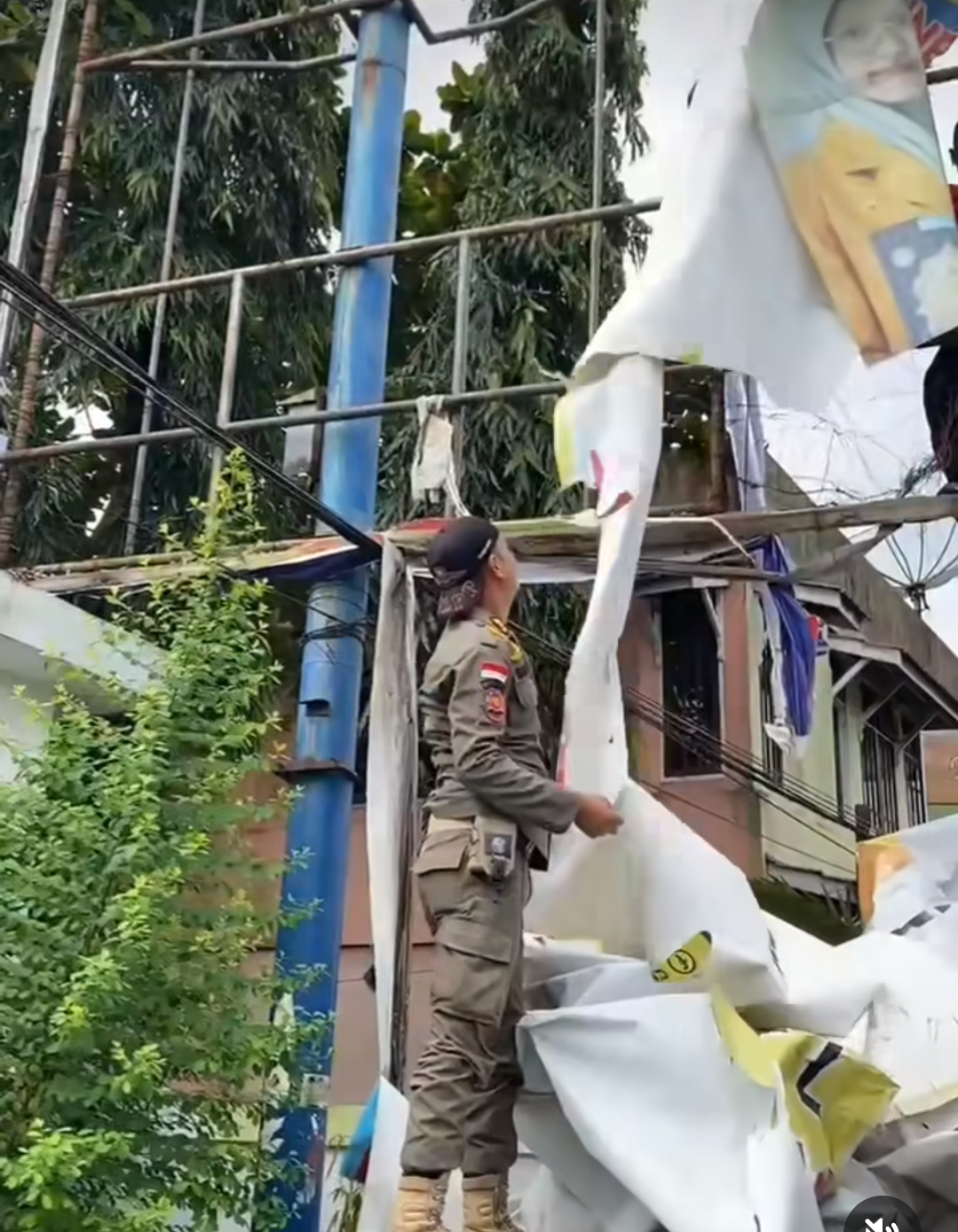 Personil Satpol PP Kampar Tertibkan APK Serentak di 21 Kecamatan