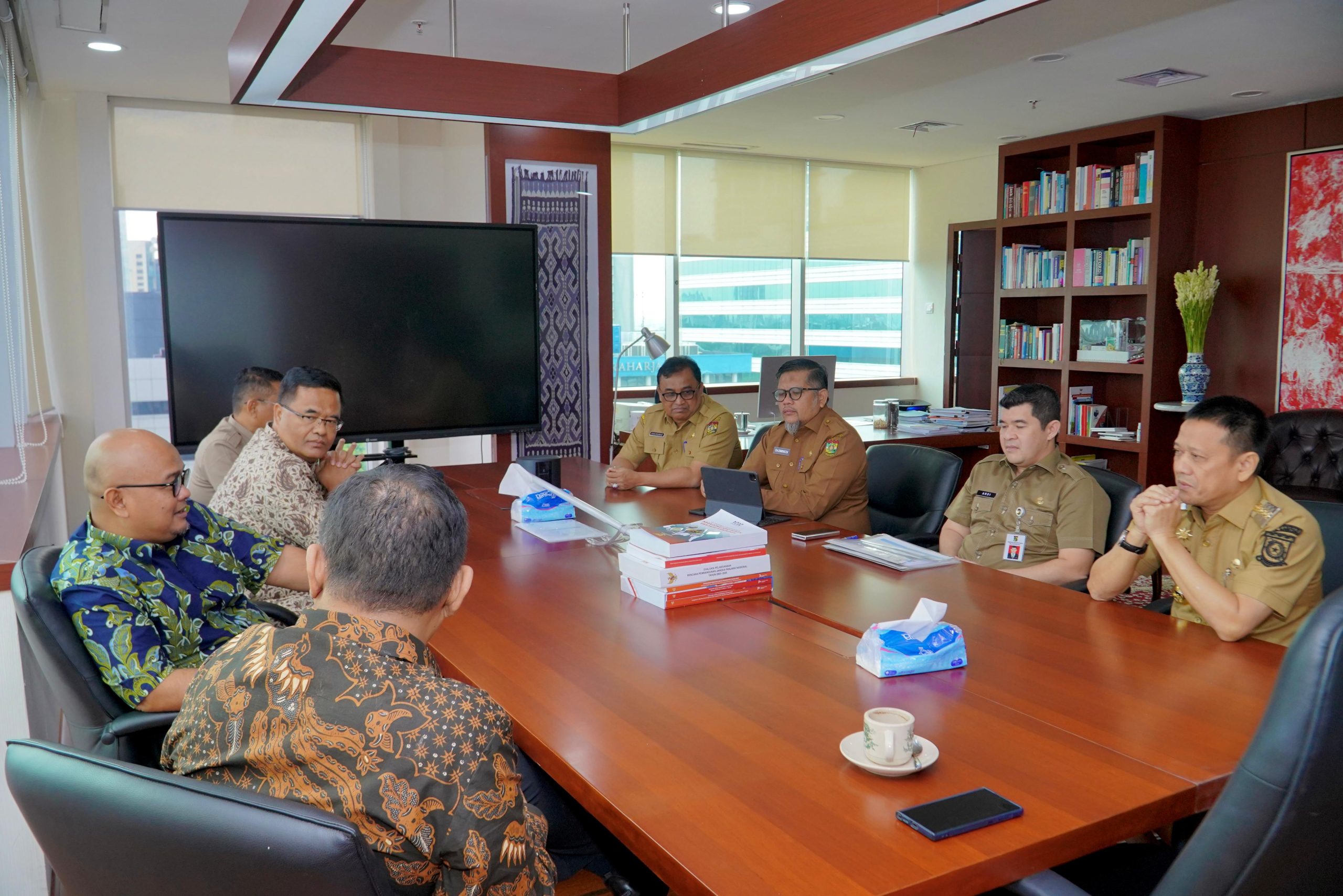 Bekawan.com – Penjabat Bupati Kampar Hambali bertemu dengan Deputi Bidang Pemantauan, Evaluasi dan Pengendalian Pembangunan (PEPP) Erwin Dimas di Kementerian PPN/Bappenas RI dalam rangka meminta arahan terkait Pengusulan Kegiatan Pembangunan Daerah Kabupaten Kampar yang di danai melalui APBN Tahun Anggaran 2025, Senin (19/2/2024).