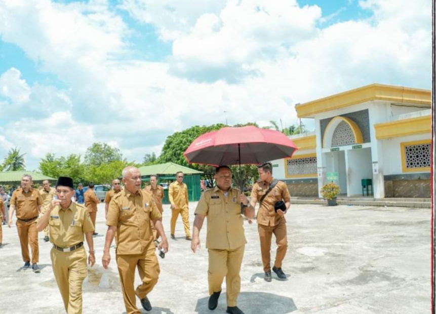 Dalam tinjauan yang digelar Senin (25/2/2024), terlihat Sekda Yusri didampingi sejumlah Dinas Teknis dan Forkopimcam memantau sejumlah persiapan acara yang digelar di Kompleks Mesjid An-Nizam, Desa Perhentian Raja.