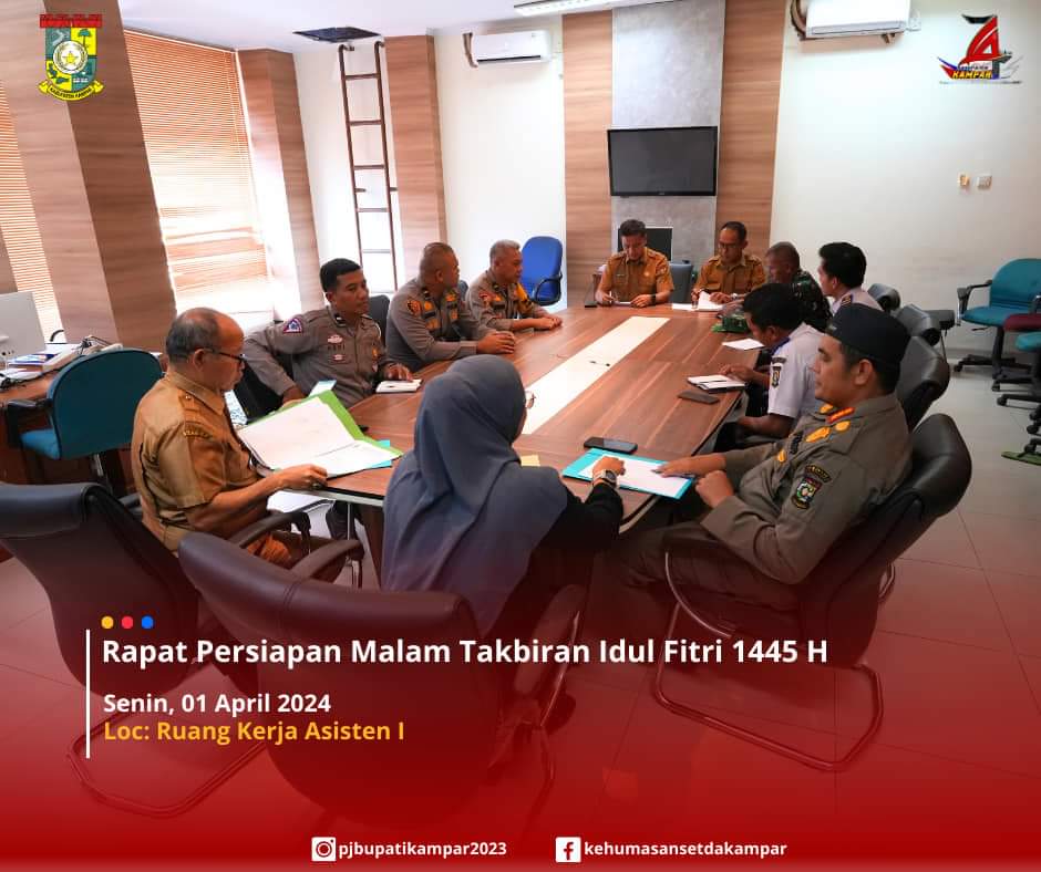 Asisten I Setda Kampar Pimpin Rapat Persiapan Malam Takbiran Idul Fitri 1445 H