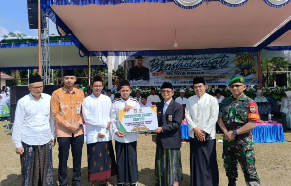 Diakhir amanatnya Purwadi juga menghimbau untuk menjadikan pesantren sebagai tempat menuntut ilmu, berlatih kepemimpinan dan menumbuhkan semangat kebersamaan. Usai pelaksanaan upacara, Baznas Kabupaten Kampar juga mendistribusikan zakat sebanyak 300 juta untuk seribu santri. (Adv)